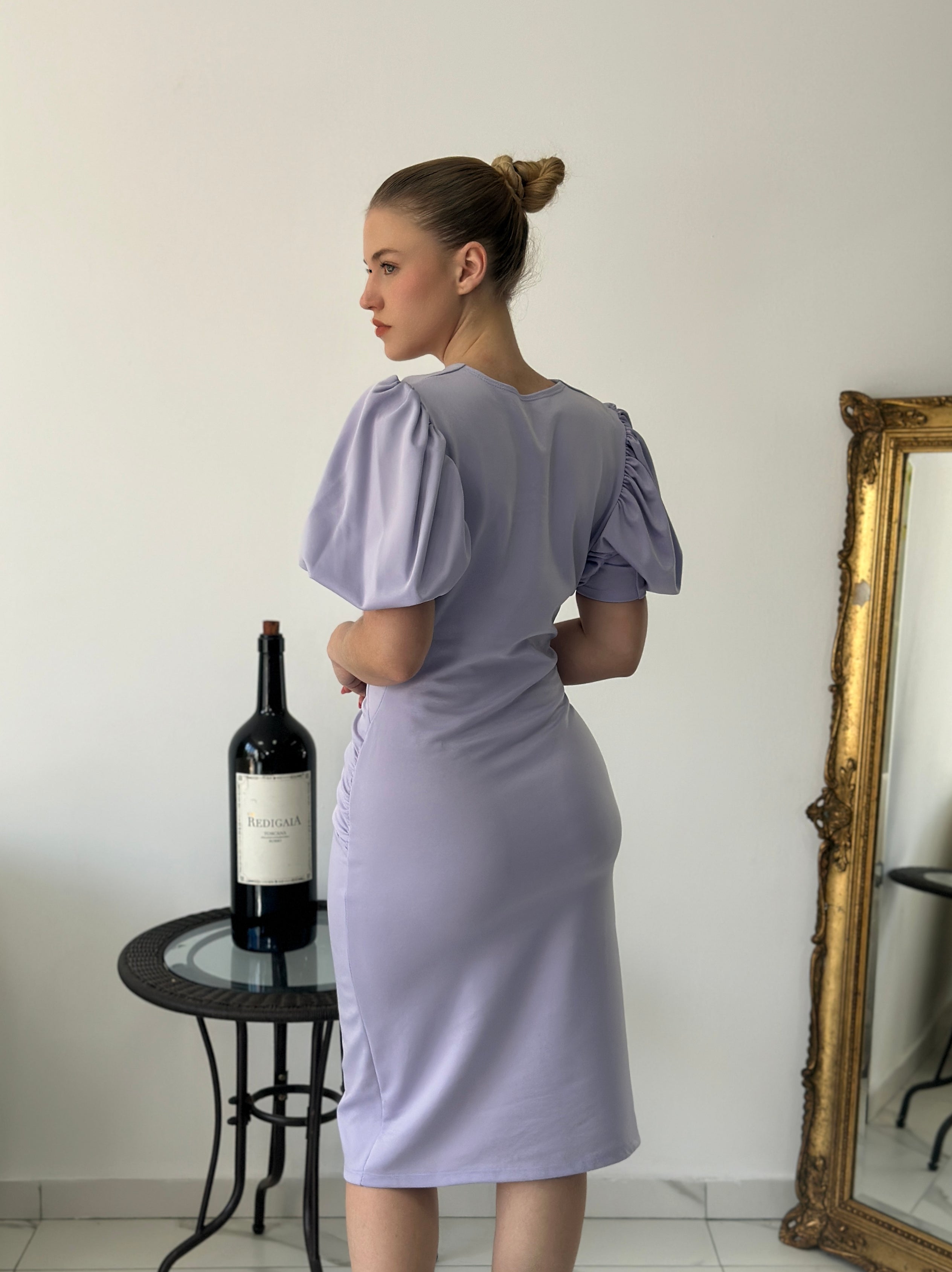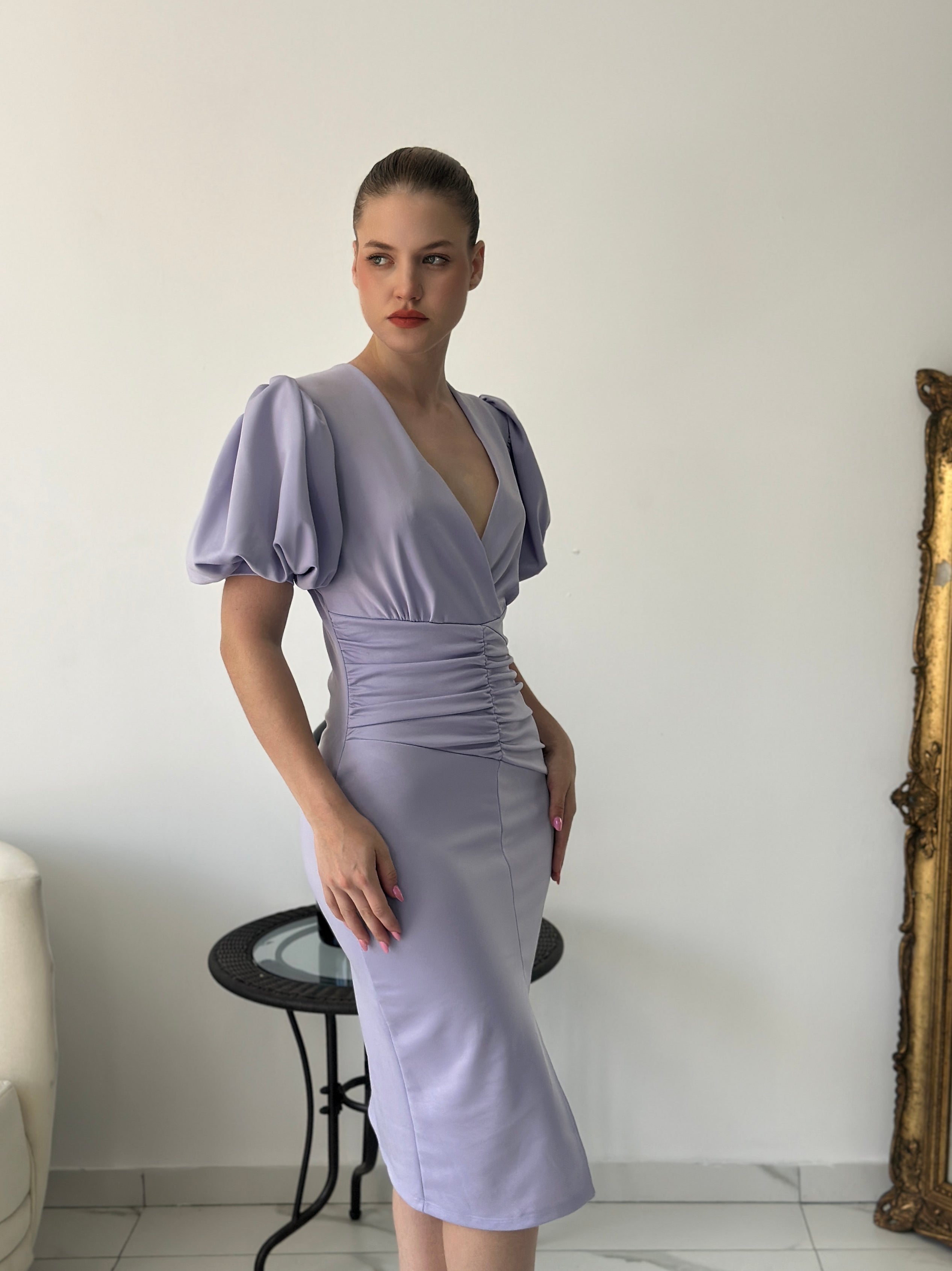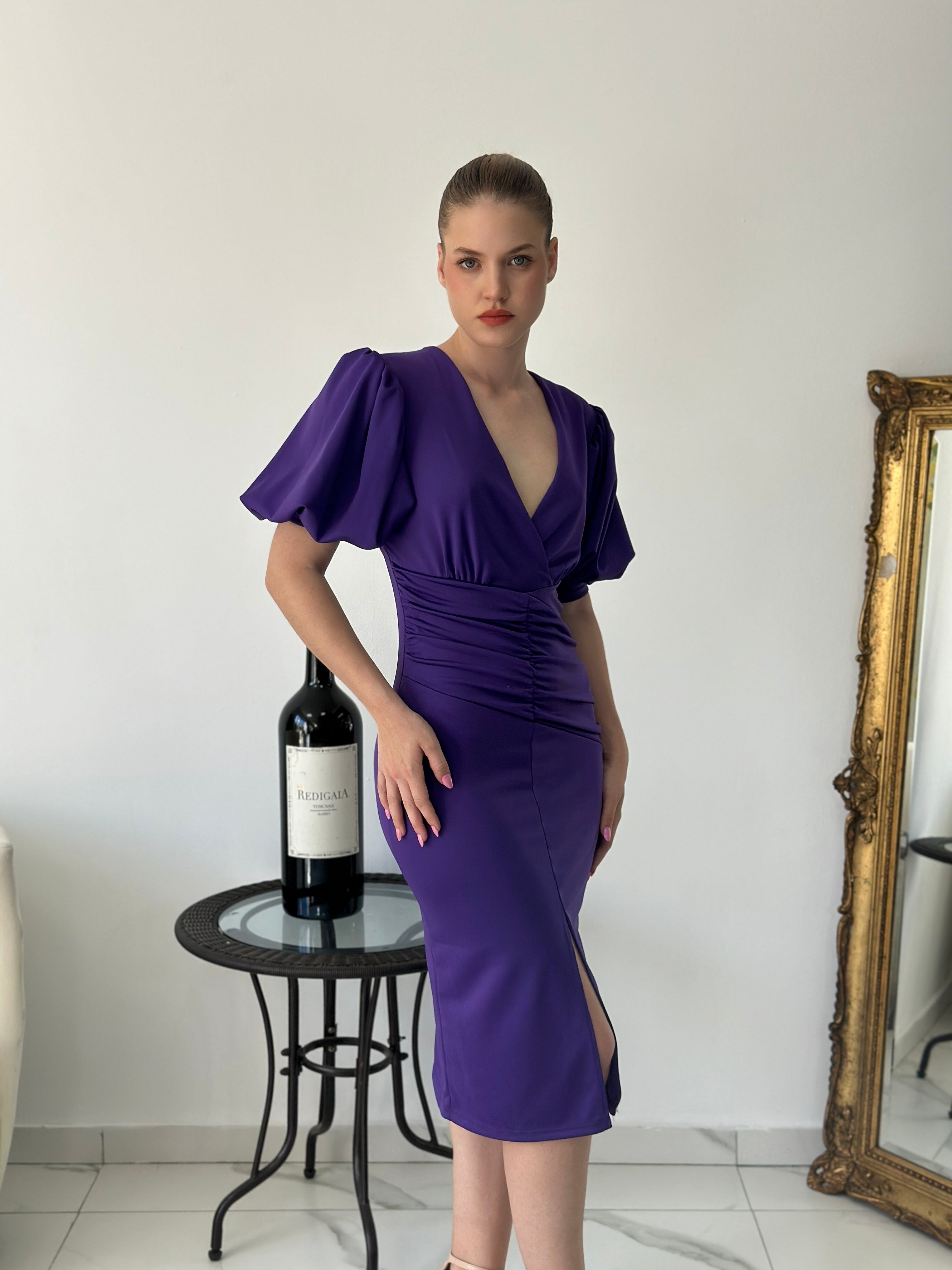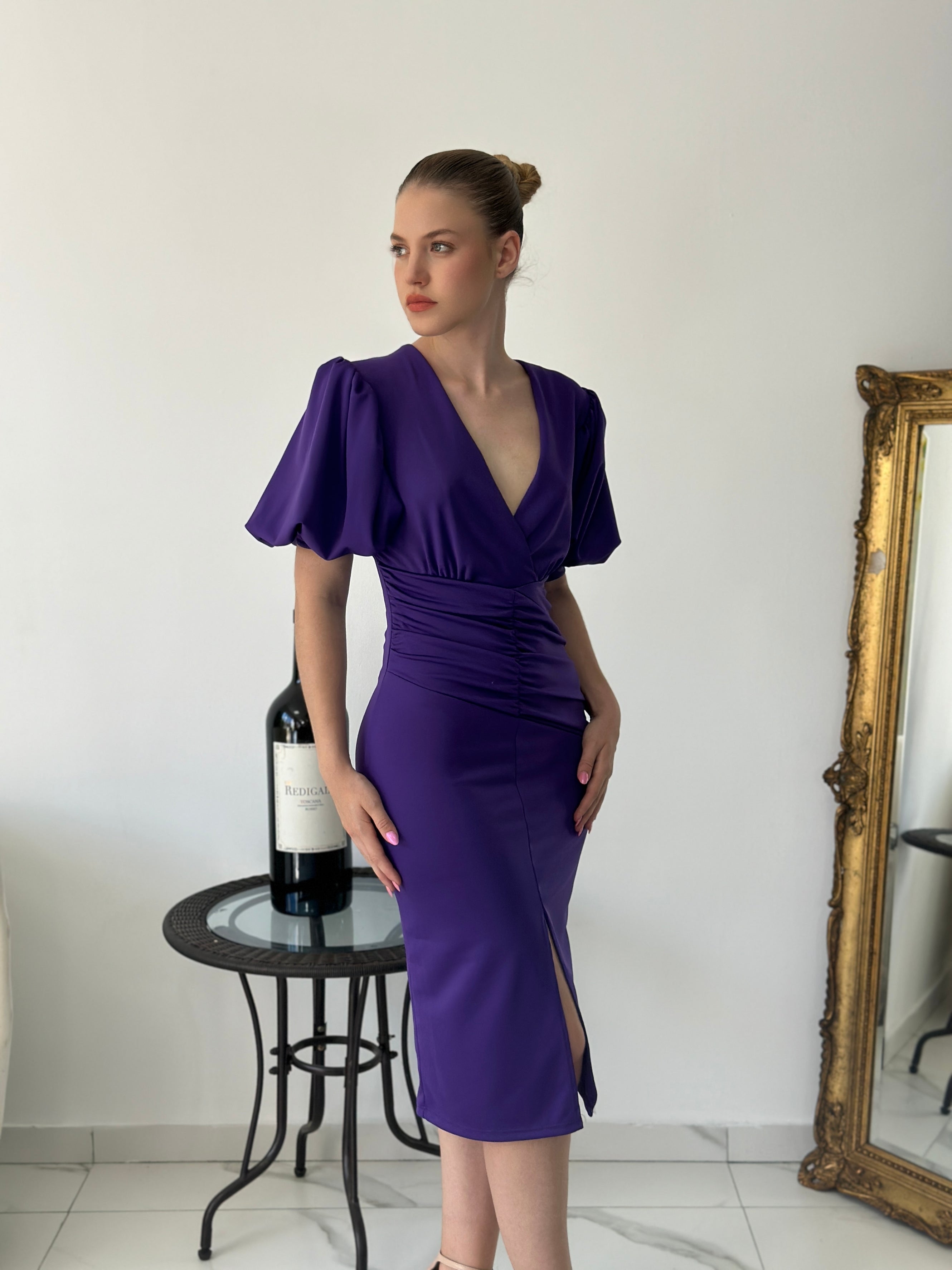 El vestido Elegancia Carmesí captura la esencia del refinamiento con su silueta midi y detalles cuidadosamente pensados. Este vestido en un tono rojo carmesí radiante es la definición de sofisticación, también disponible en otros colores. Con un diseño de ruching que adula la figura y mangas cortas fluidas que aportan un aire de gracia, es ideal para eventos de negocios o cócteles elegantes.
