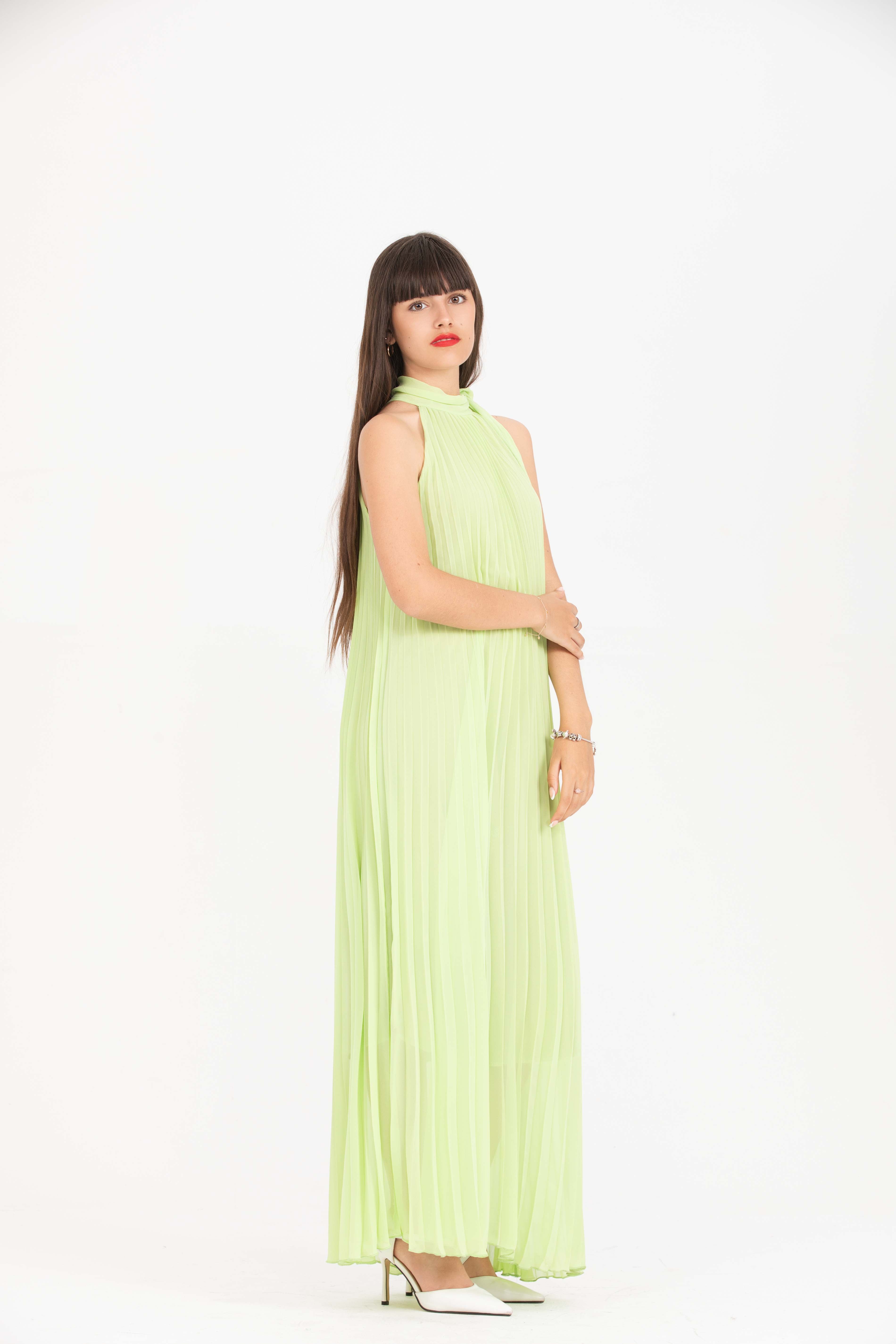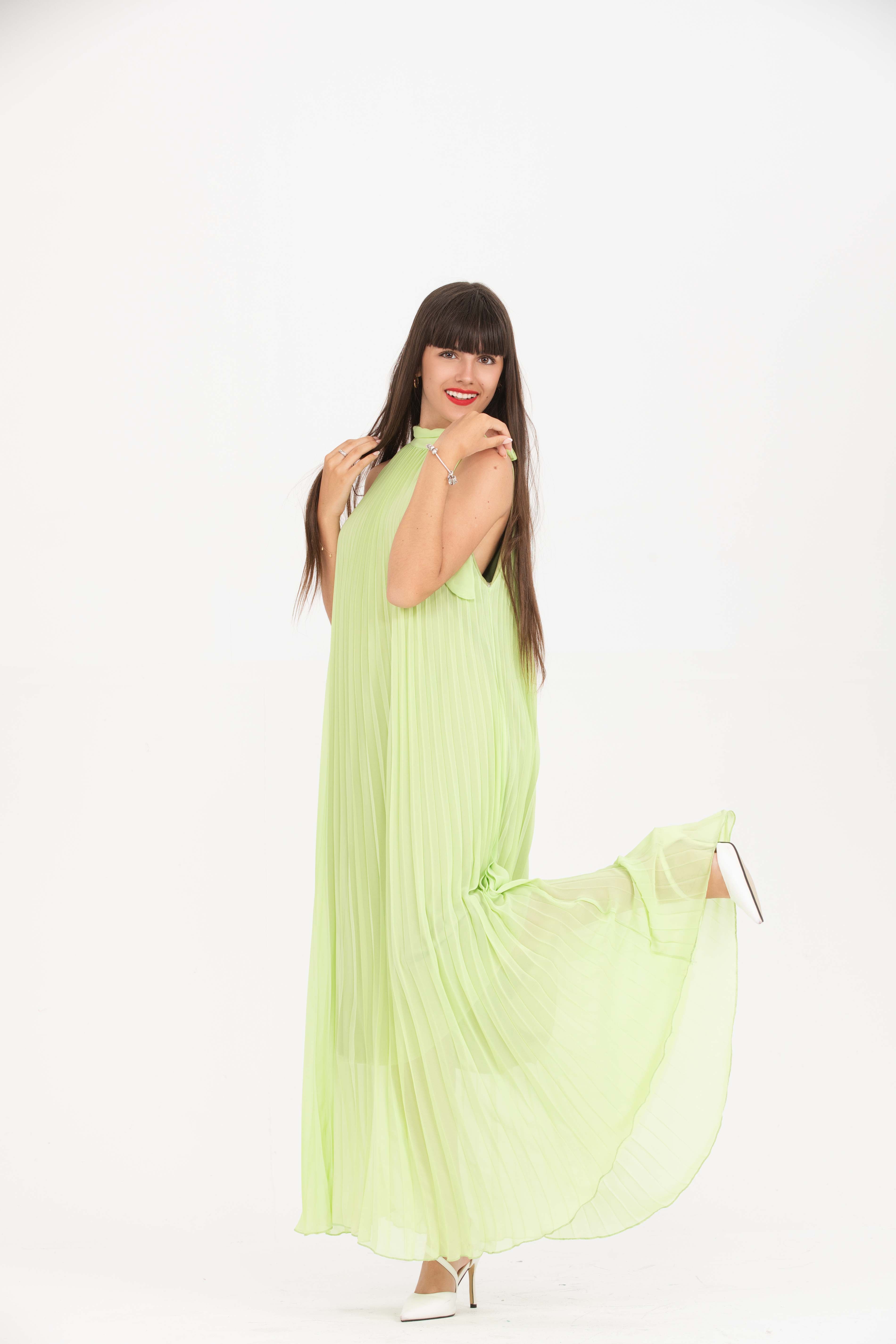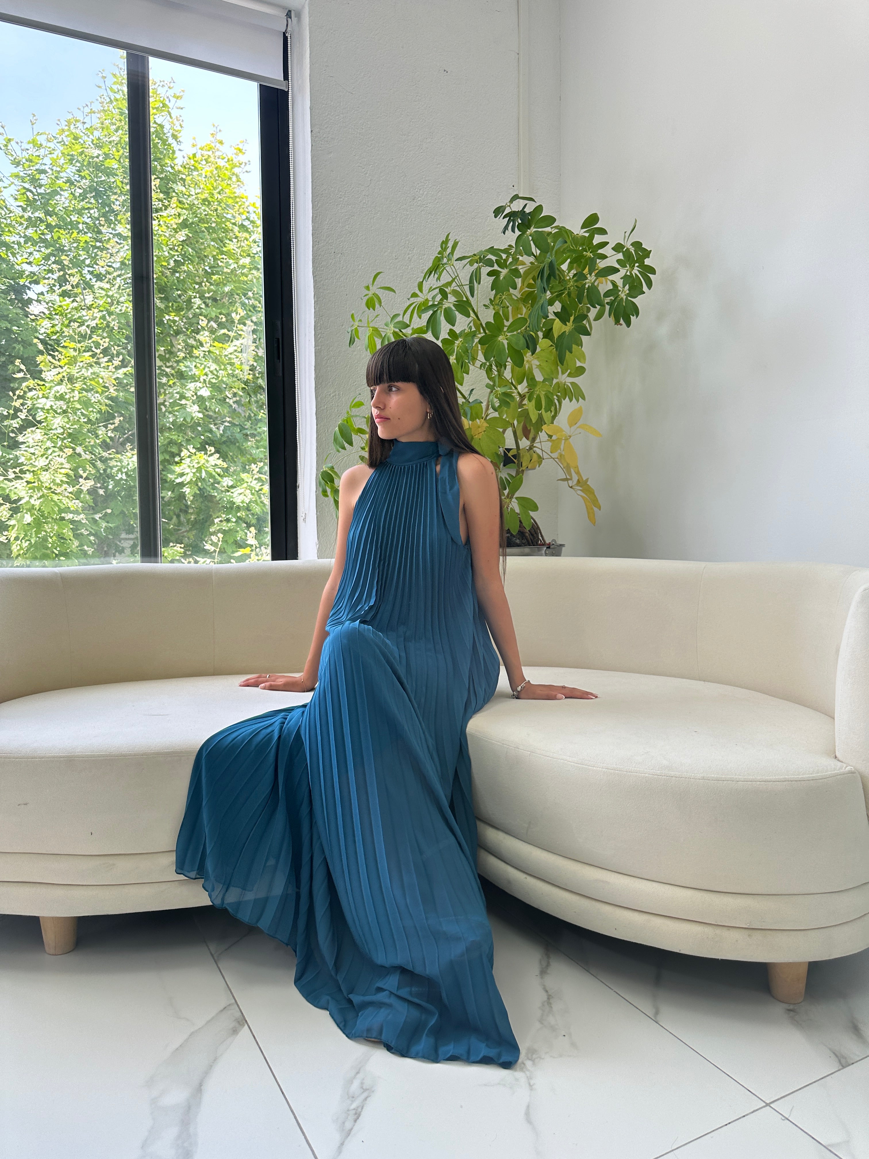 VESTIDO LARGO PLISADO DE ALTA MODA