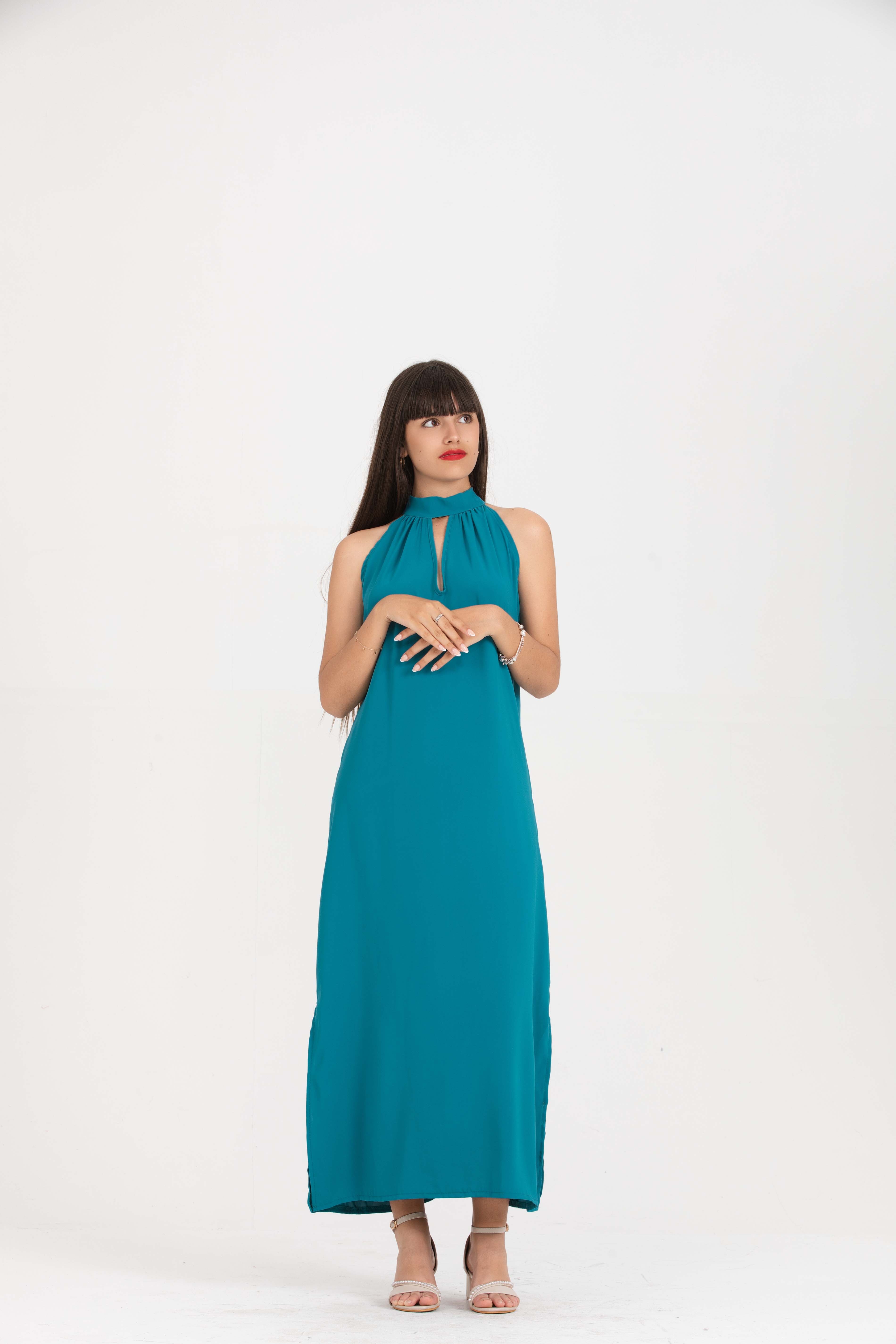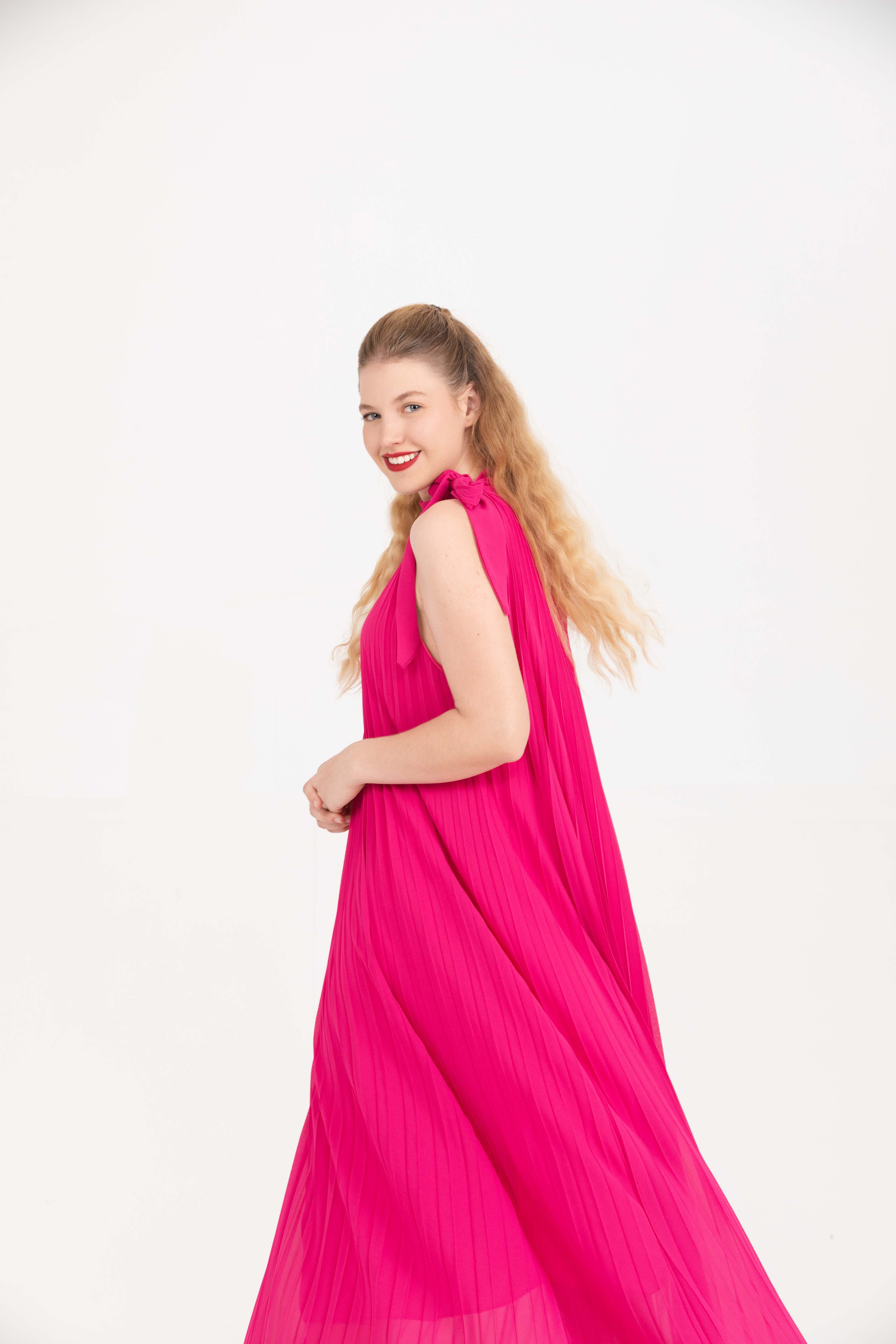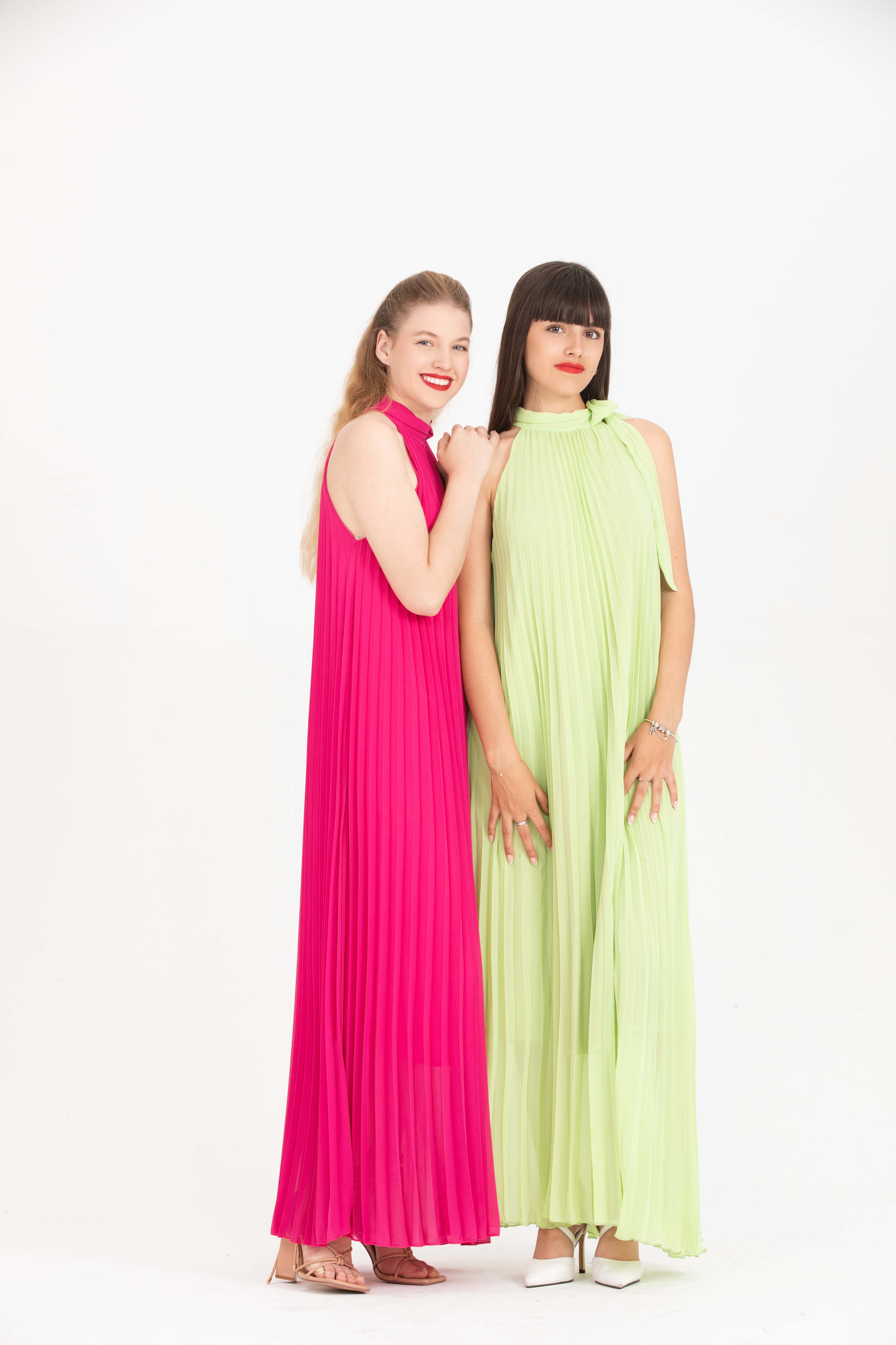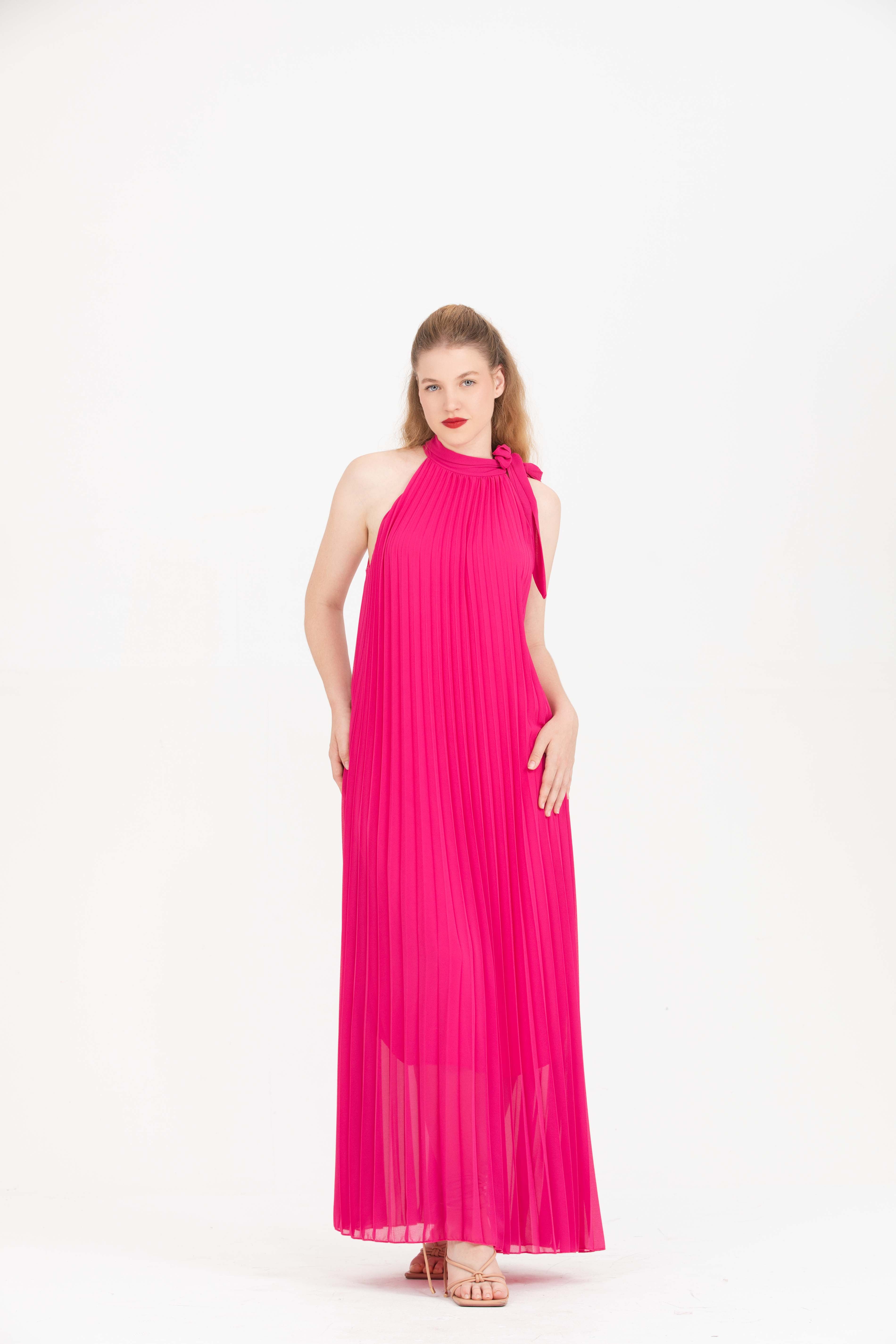 VESTIDO LARGO PLISADO DE ALTA MODA