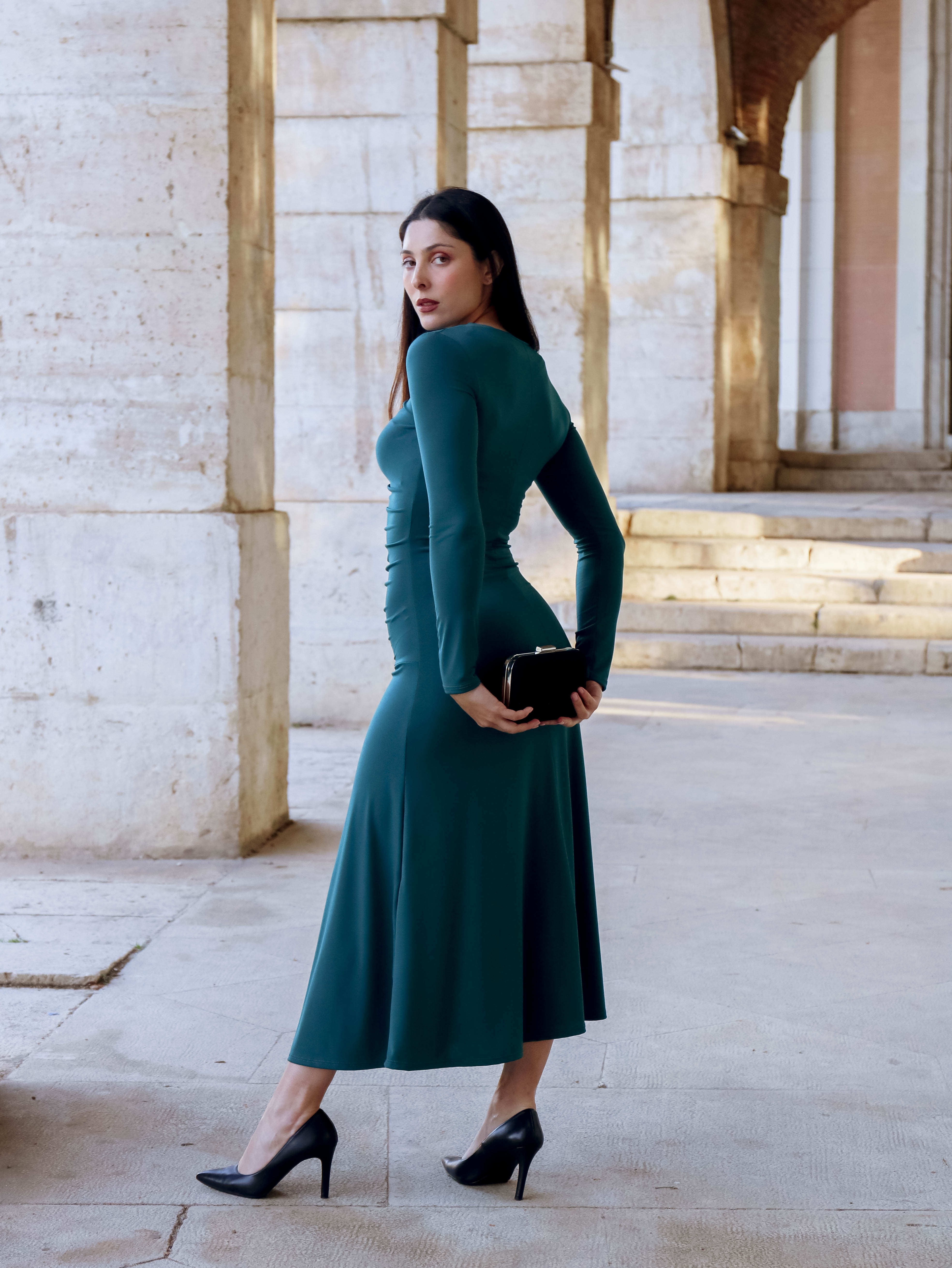 El Vestido Frida con Vuelo de Glamoryy se adapta perfectamente a tu figura, mientras que su falda larga con vuelo te permite moverte con total libertad.