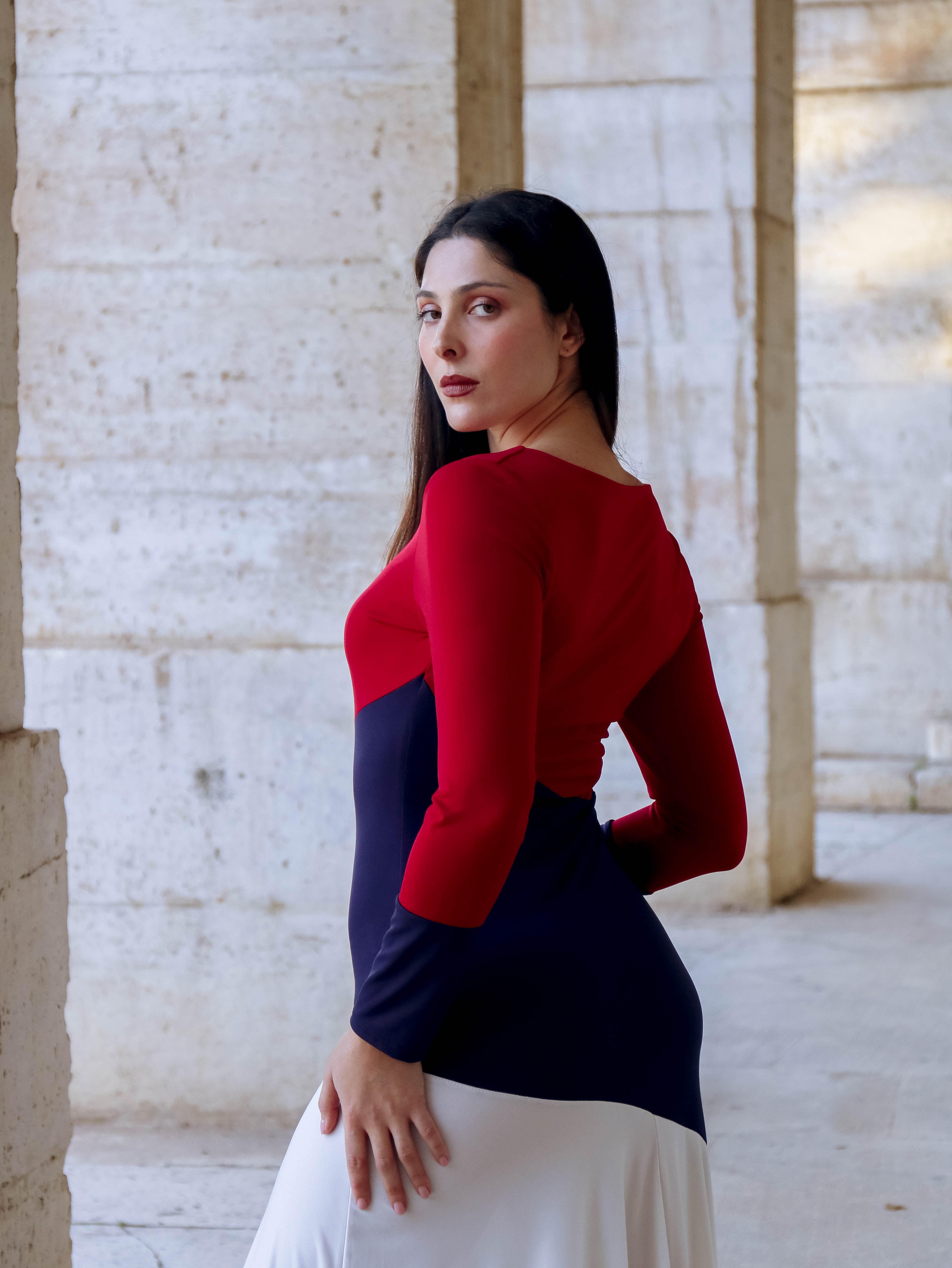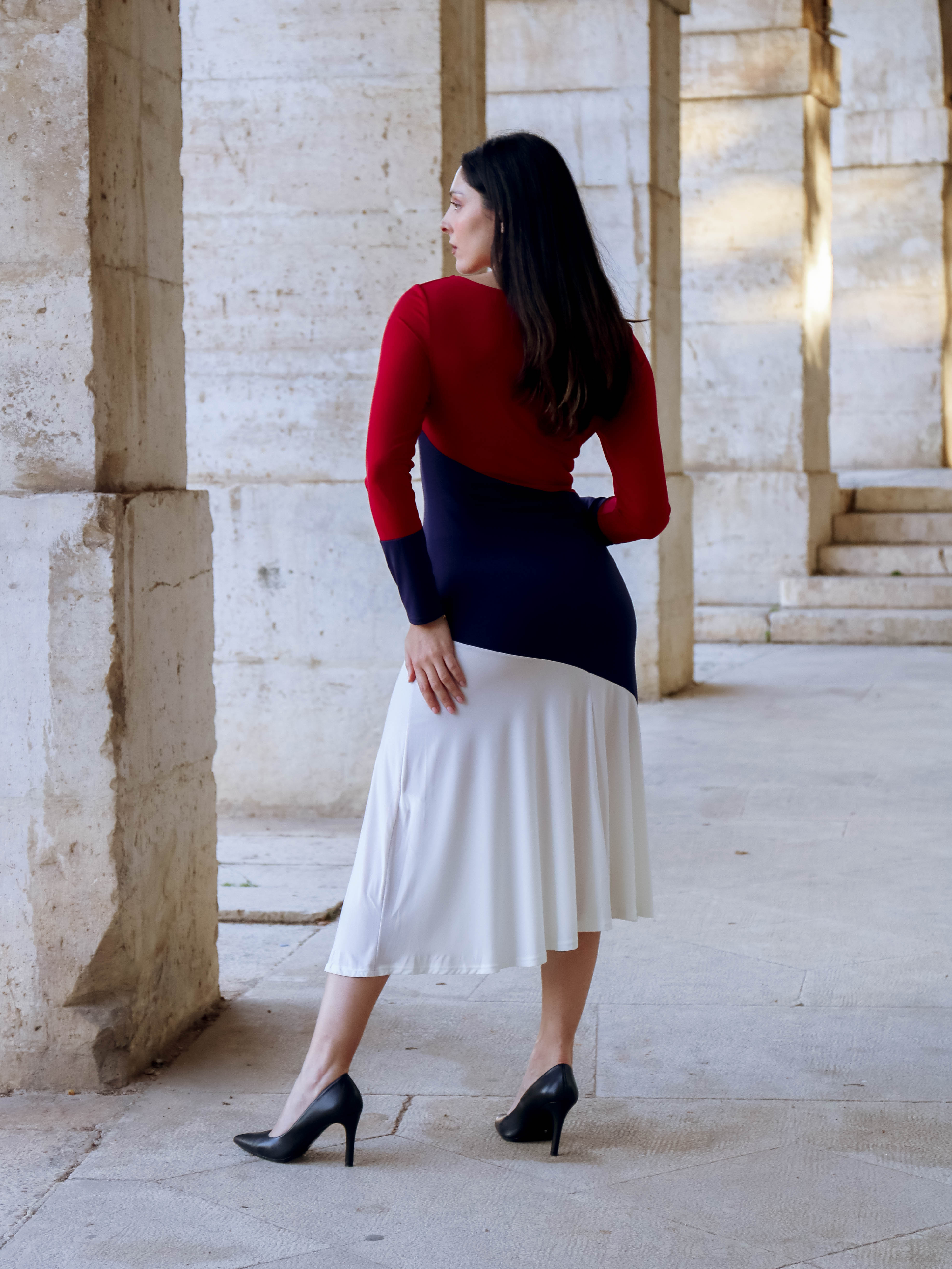 El Vestido Largo Multicolor de Glamoryy combina tres colores vibrantes que aportan un toque moderno y llamativo. Sus mangas largas y su falda ancha no solo realzan tu figura, sino que también ofrecen una comodidad excepcional.