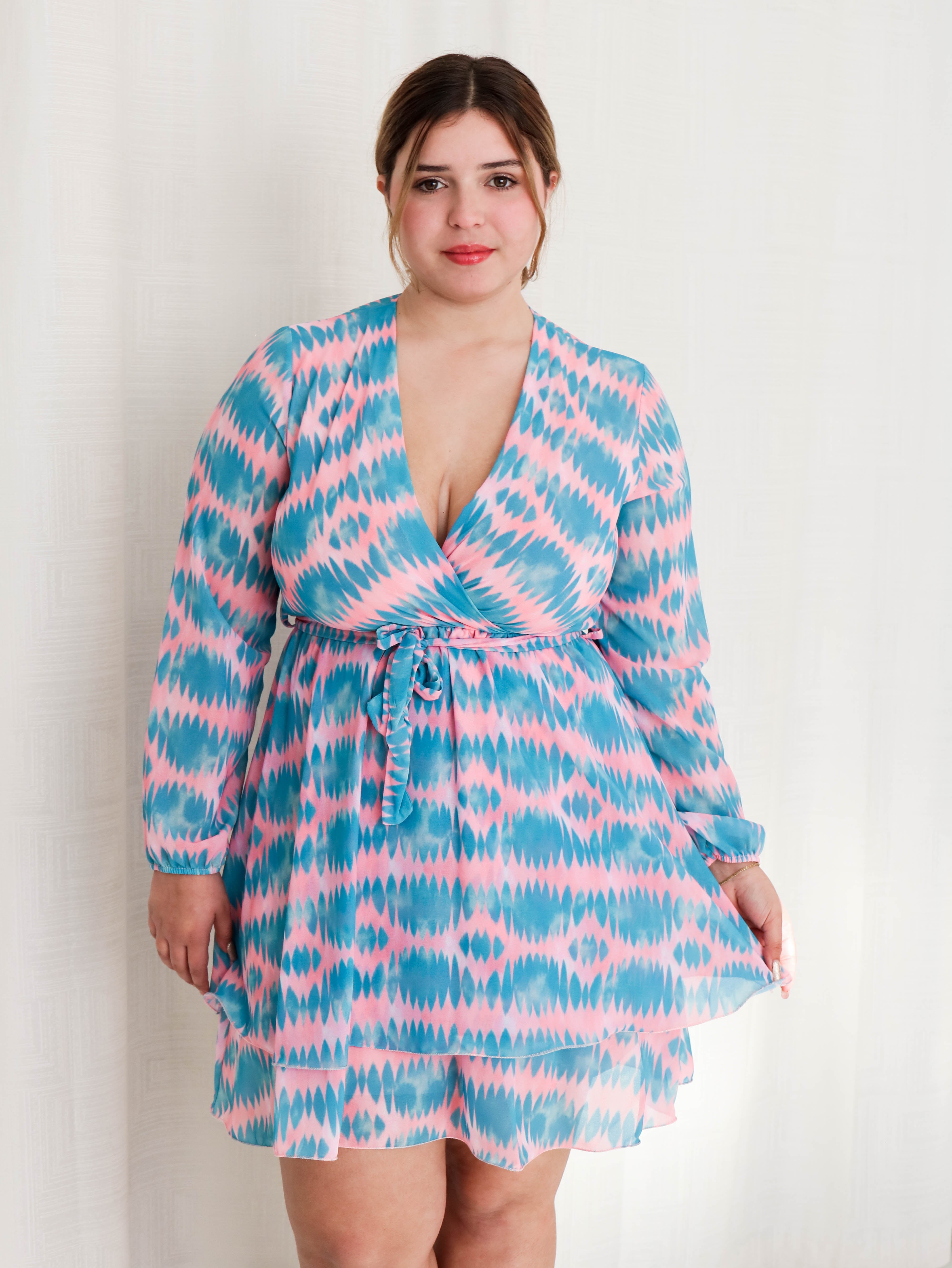 El Vestido Alexandra Corto de Glamoryy cuenta con un elegante tejido de gasa, que junto con el cuello en V y los volantes en la falda, crea un look femenino y sofisticado.